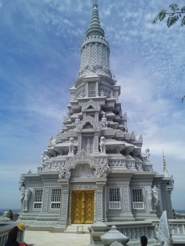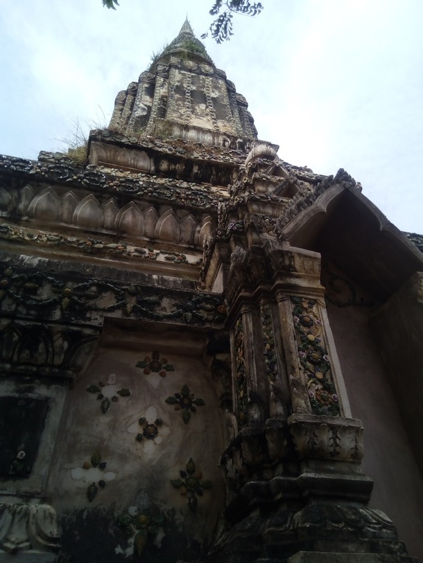古い仏塔もあります。 アンドゥオン王の遺骨が祀られていると言われる仏塔です。19世紀中ごろに建てられました。 お花モチーフのタイルがかわいらしいんです。
