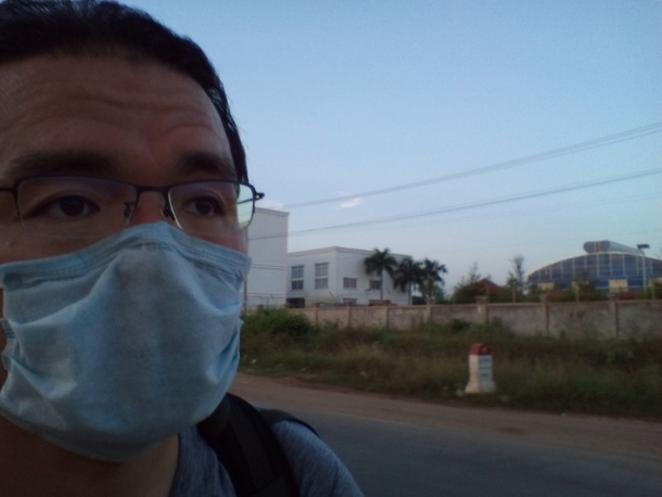 スタートしてすぐの様子。あたまにクロマーがないのでとっても快適・・・と、思うでしょ。実はこのマスク、出発時に関空でしていたものと同じ・・・そろそろ限界・・・汗臭いし・・・露店に売ってるのですが・・・まぁこいつも相棒ですから・・・