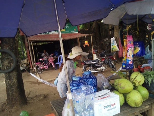 で、再び休憩。ヤシの実ジュースとお水を購入。写真を撮ると店員さんが照れて笑ってくれました。お水は携帯用。ジュースを飲みほして出発・・・そこから体調急降下・・・・