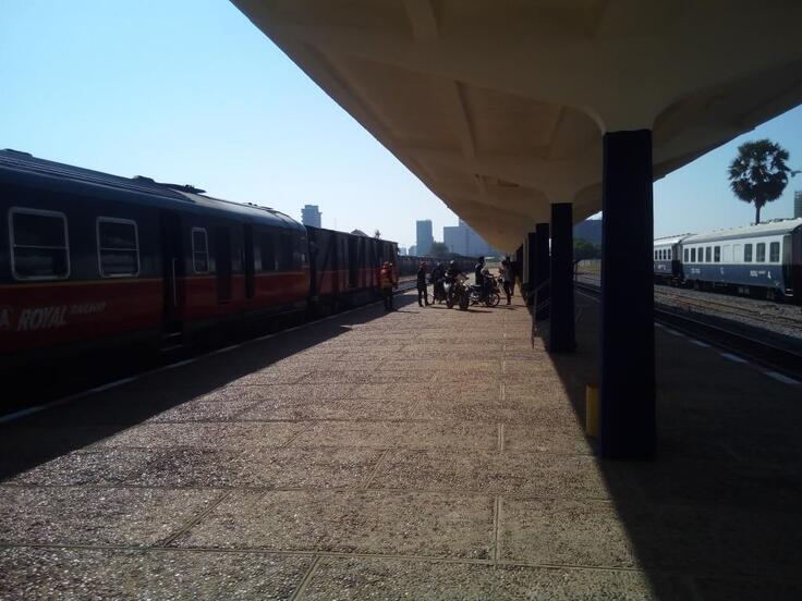 駅に到着しましたら、ちょうど列車が入線しているところでした。まだ14時半ごろだったのでシハヌークヴィルからの便が30分ほど遅れて到着したようです。
