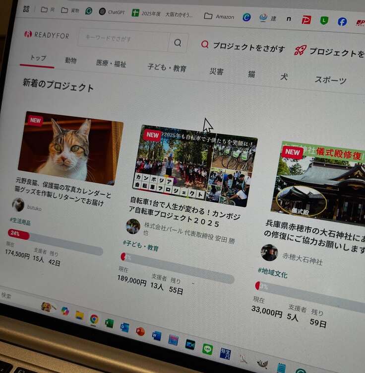 そして、うれしいことに、READYFORのトップページ「新着のプロジェクト」コーナーに掲載していただきました!