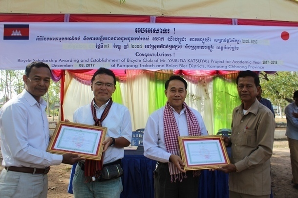 2016年と2017年の自転車プロジェクトの功績を併せてコンポンチュナン州から感謝状を頂いたのです!!私はもちろんうれしいのですが、チャンディさんの分もあったのがほんまにうれしかったです!!!