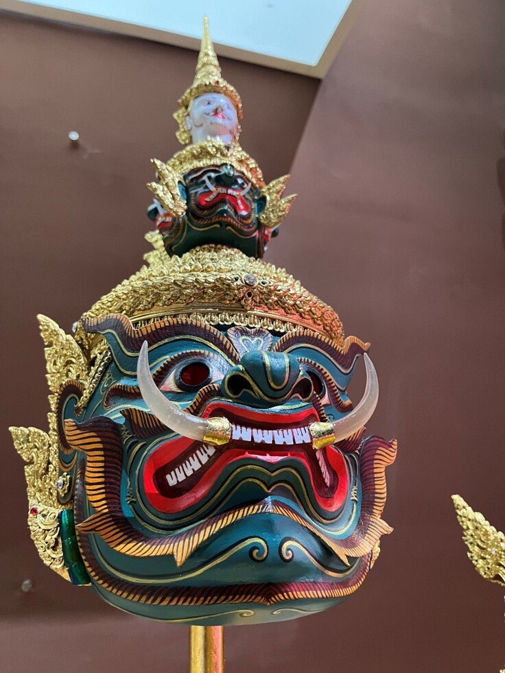 最後は美しい仮面。カンボジアで一度だけ見かけたことがある仮面踊り。そこに登場するハヌマーンです。ヒンズー教の神話ラーマーヤナに登場する猿で、さらわれたシーター姫を助けるために大活躍します。