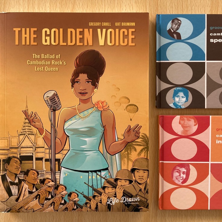 時々メルカリなどで彼女の歌が収録されているCDなどを買ったりしていますが、そんなさなか、彼女の人生を物語にした本が出版されていることを知りました。「The Golden Voice」(https://www.thegoldenvoicemovie.com/)です。英語版とクメール語版のみ出版されていましたので英語版を取り寄せて読んだんです。