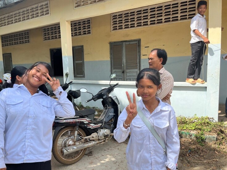 私が初めて訪問した中学校の名前は TEUK HAUT 中学校です。気持ちのいい風が吹く、とても広々とした学校でした。