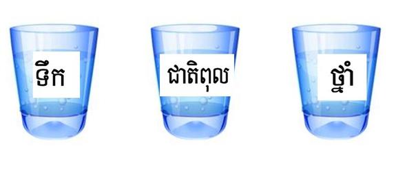 上のコップのラベルには、カンボジア語で左から「水」、「毒」、「薬」と書かれています。あなたには分かりましたか?そう、文字が読めなければ判別がつきません。