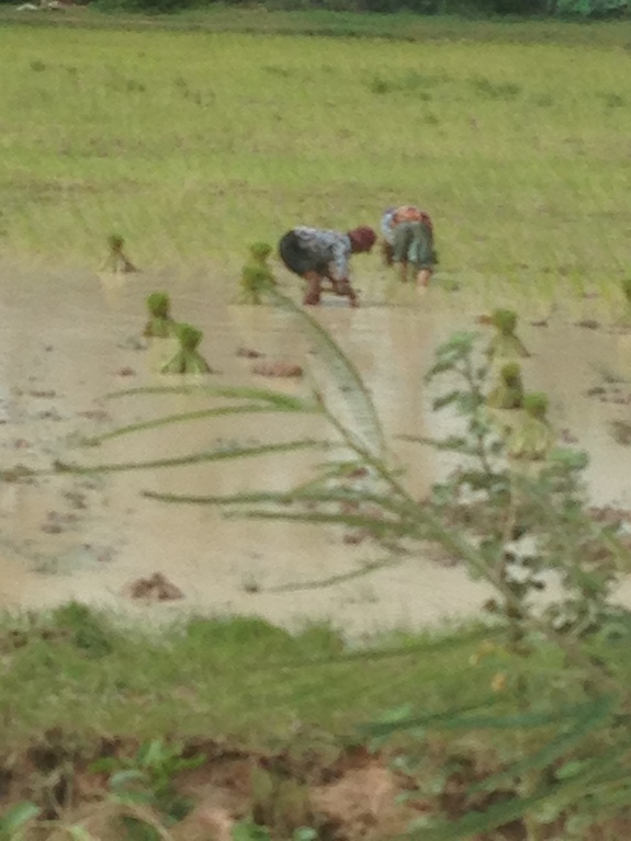 これ、めちゃくちゃ腰が痛くなるのですが、こんな感じで稲を植えています。