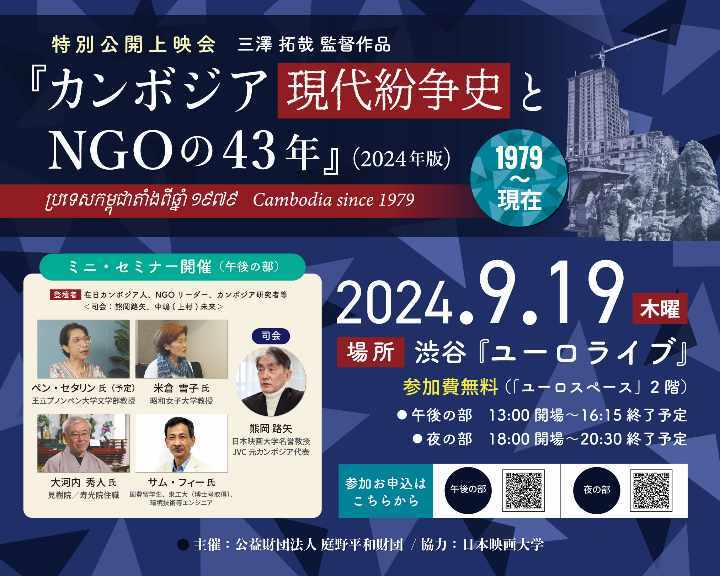 9/19(木)「カンボジア現代紛争史とNGOの43年」特別上映会を開催します