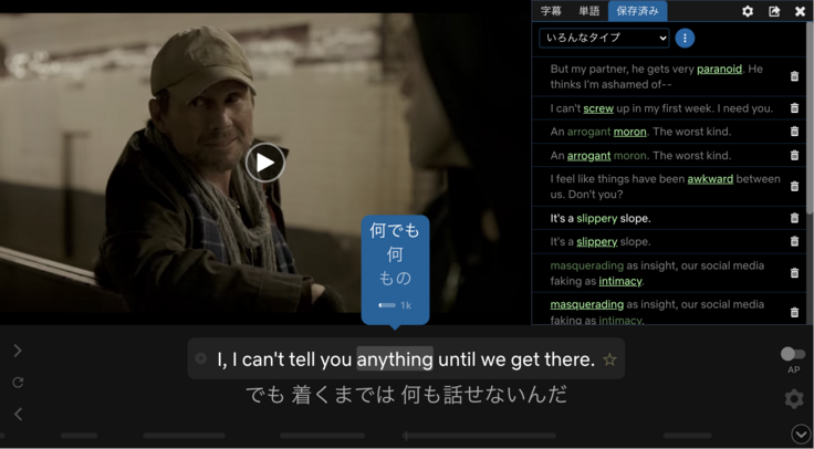 Google Chromeの拡張機能を使うと、Netflixで見る映画やドラマに日本語と英語の同時字幕を流すことが出来ます。また、字幕の中にある意味を知らない単語にカーソルを合わせると即座に翻訳してくれる機能や、全セリフがリスト化されているので、選んだ単語やフレーズをお気に入り保存してくれたりする機能もあります。それをエクスポートする機能もあるので、後でエクセルに取り出して、グッドノートに出してフレーズ帳なども作成できます。