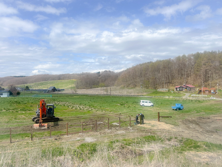 牧柵の設営工事が始まっています