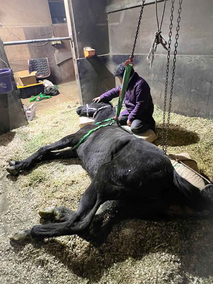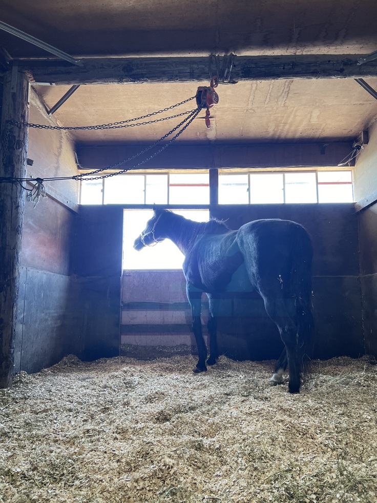 馬房で起立できなくなり
