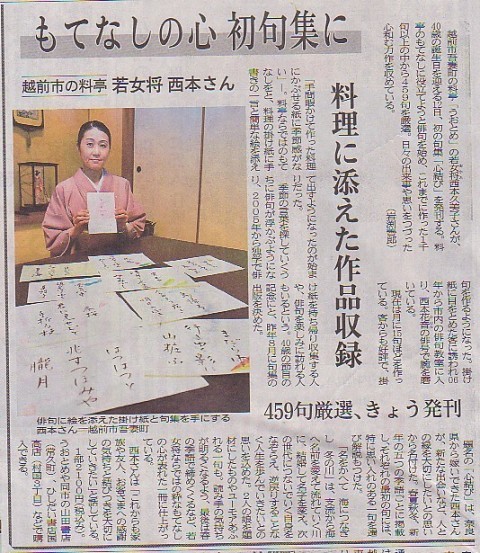 そして、4月12日の福井新聞に、句集発刊の記事を掲載していただきました。