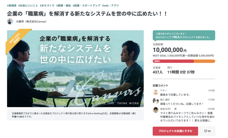 この度はプロジェクト「企業の「職業病」を解消する新たなシステムを世の中に広めたい!!
