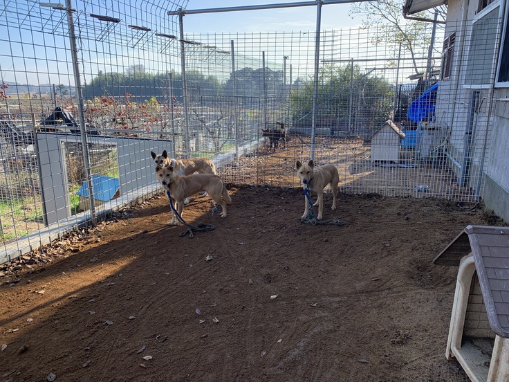 残り2つのドッグランは12月に仕切りを付け、先週は扉が付きました。犬たちが日中日向ぼっこをしながらのんびり過ごせます。