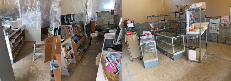 堆積した泥を出して、店内を消毒するために店内の備品・什器をすべて店外に出す