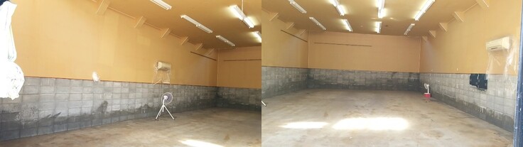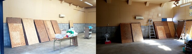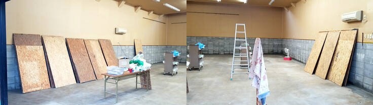 床板をはがす。床下コンクリート部分の洗浄 ボランティアさんの力も借りて・・・・
