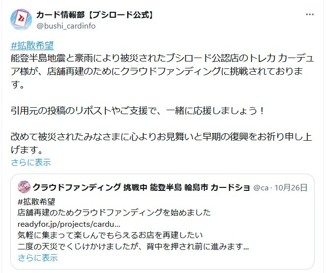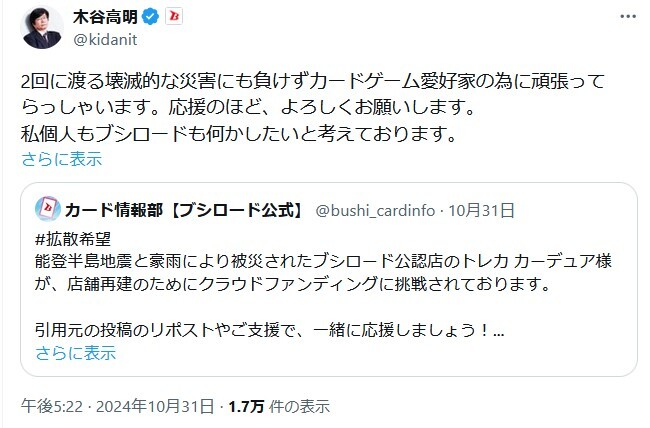 【応援メッセージ】株式会社ブシロード 代表取締役社長 木谷高明様 カード情報部様 10/31