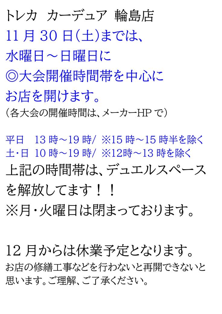 お客様が、あなたがたのおかげで、感謝 11月~ デュエルスペース解放してます。カード大会開催中