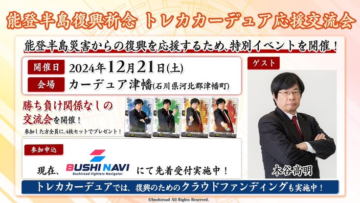 ブシロード様より復興の応援 12/21 能登半島復興祈念 トレカ カーデュア 応援交流会を開催!!