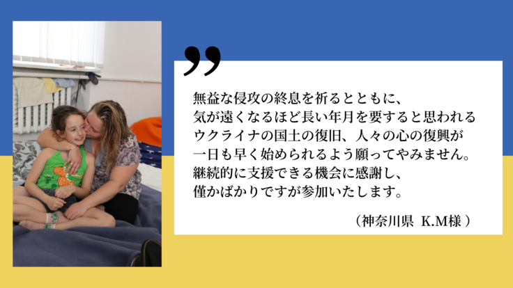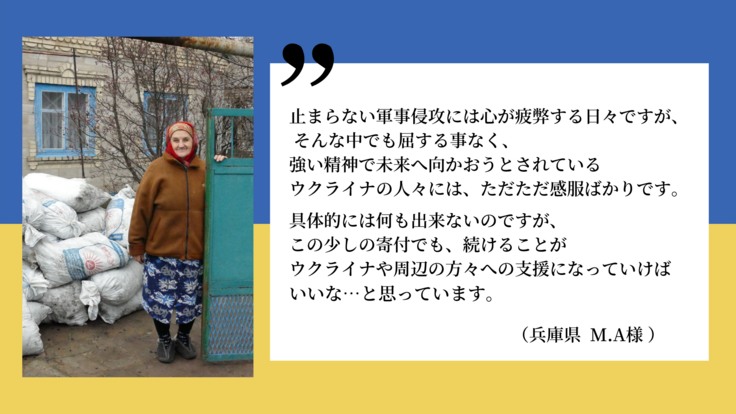 本日は、この「ウクライナ危機~1日33円からの人道支援サポーター募集!」にお寄せいただいた、応援コメントの一部をご紹介させていただきます。