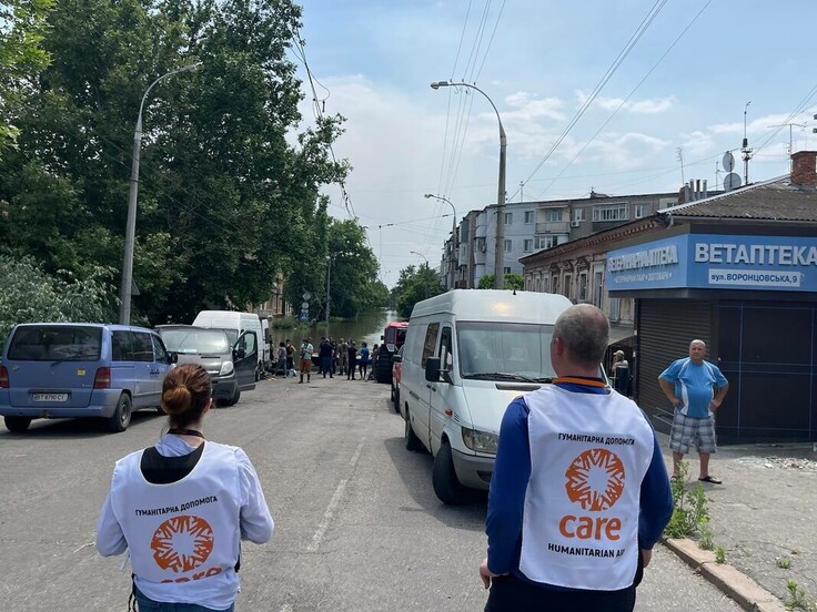 左岸地域はまだ避難できておらず、多くの住民が屋根の上に取り残されており、CAREとパートナー団体は救命支援を続け、20トンの水、ボート、ウォーターポンプを配布しています。