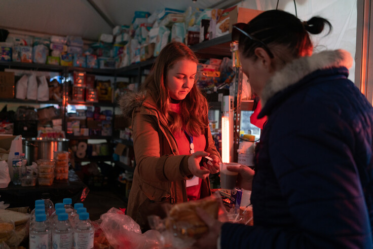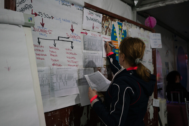 ルーマニア国境に集まる大量の支援物資の管理や、次の避難場所までの交通機関の手配などの調整を行う職員。着の身着のまま逃れてきた人々が、それぞれ必要とする支援を迅速に、そして確実に提供するために、昼夜問わず活動しています。