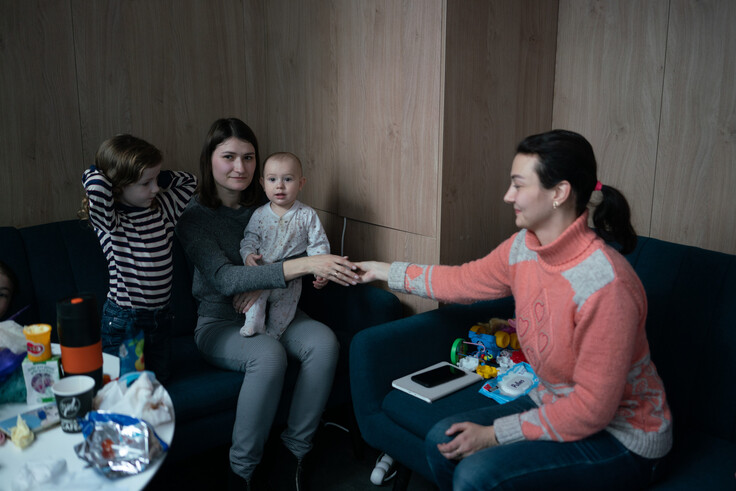 ルーマニア国境を越える人々の多くは、ルーマニアに留まらず、別の国を目指します。さらなる避難の前のわずかなひと時に、少し心を落ち着けたり、授乳をしたりする、安全で暖かいスペースを提供しています。
