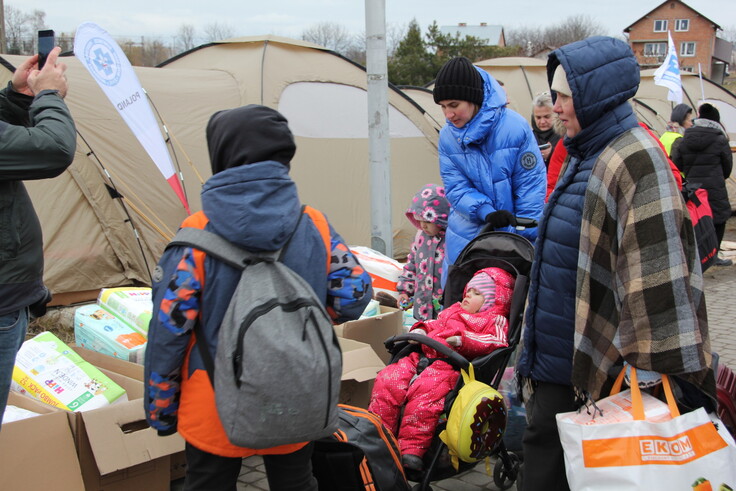 「国境検問所へは特に制限なく誰でも来ることができるので、多くの人々が集まってきます。男性だけのグループもよく見受けられます。そして、ここでは難民に対して、ポーランドおよび他のヨーロッパの都市の無料宿泊施設の情報を提供しています」とSiobhánは言います。