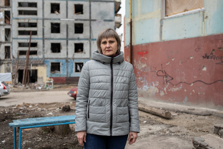 <ウクライナ南部の都市クルィヴィーイ・リーフで支援物資を受け取ったSvetlanaさん>