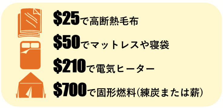 ・防寒具、固形燃料、食糧、水、衛生キットなどの緊急支援物資や現金を配布