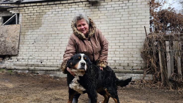 しかし一家の救助犬であるサンドラは、それほど無関心ではいれません。戦争初期の激しい戦闘がトラウマとなり、彼女は大きな音に怯えるのです。トラックが通り過ぎたり、雷が鳴ったりすると、彼女はテーブルの下に隠れて体を震わせます。サンドラは飼い主が戦闘から逃げ出したときに捨てられ、オルガが引き取るまで田舎を放浪していました。