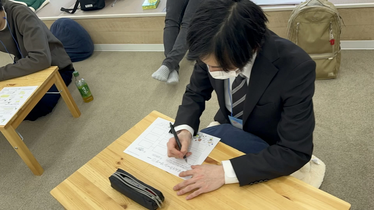 今日はじめて会ったという生徒がほとんどでしたが、同じ場所で同じ時間を過ごしていく過程で、お互いにじわじわ“知り合っていく”様子がありました。みんなが全員に書いて渡し合っていて、和やかな空間が出来上がっていましたね。