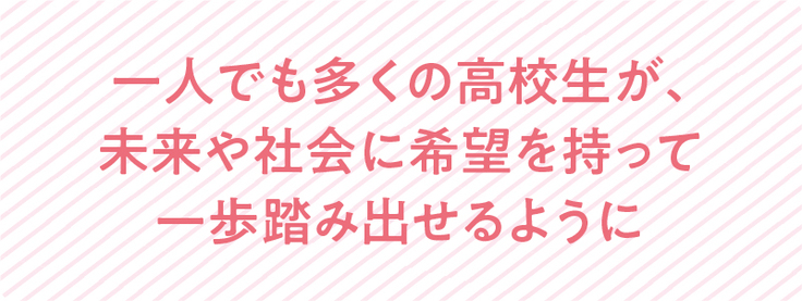 一人でも多くの高校生にキャリア支援を届けるために、ぜひ皆さまに、高校生の社会的自立を応援するサポーターになっていただけないでしょうか。