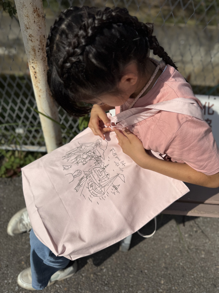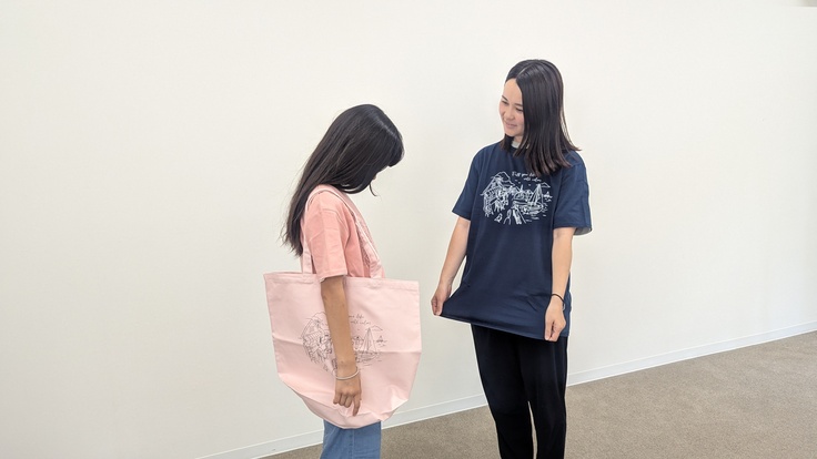 Tシャツやパーカーだけでなく、トートバッグやランチバッグなど小物類もあります。