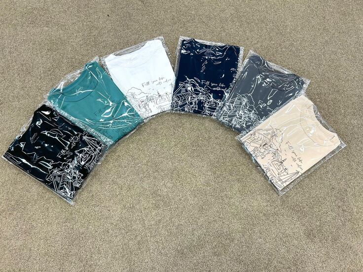 色が複数種類あり、Tシャツの色によってデザインのカラーが変わります。
