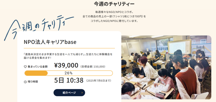 みなさま、キャリアbaseの初アパレルチャリティーを応援していただけますと幸いです。