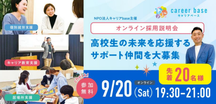 9/20(土)開催|高校生の未来を応援するサポート仲間を大募集|~オンライン採用説明会~