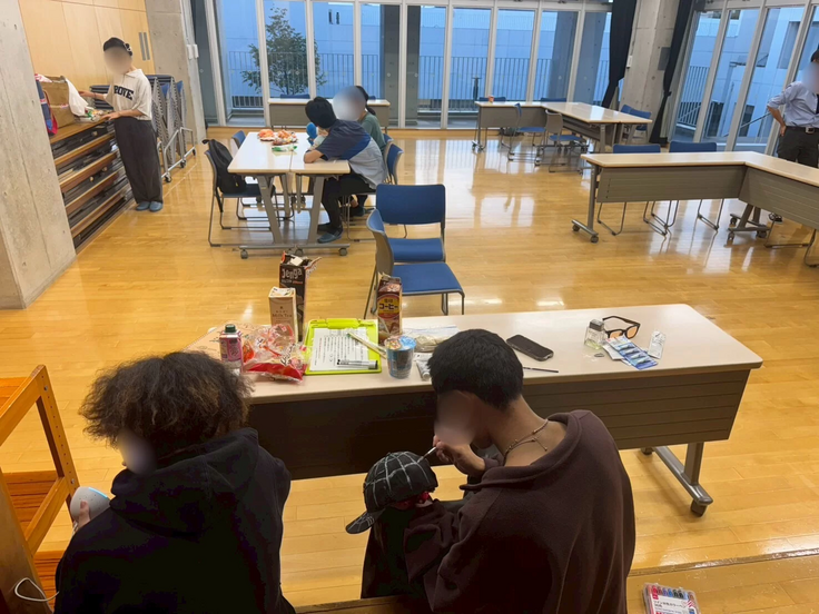 それぞれが自分の時間を過ごしており、進路相談をする生徒、カードゲームを楽しむ生徒、音楽を聴きながらリラックスする生徒など、思い思いの過ごし方が見られました。