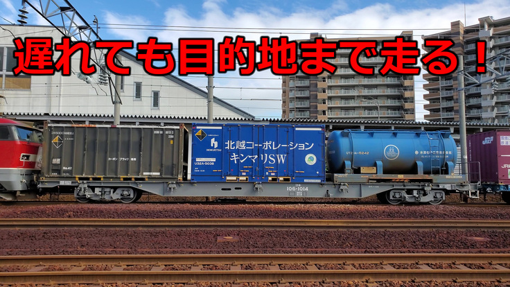 タイトル:メディアは取り上げないが、悪天候で遅れながらも走る貨物列車がある