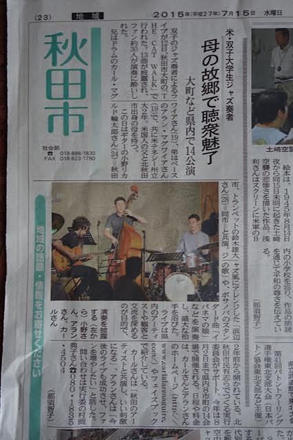12日のツアー最初のライブの様子が秋田さきがけ新報に紹介されました。