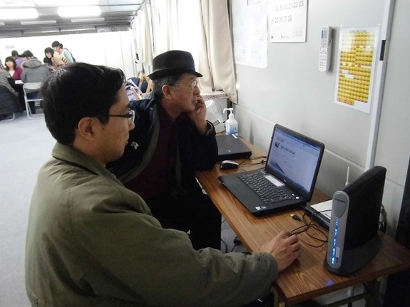 集会所に常駐している社協の佐藤さんご協力のもと、集会所のパソコンを操作します。