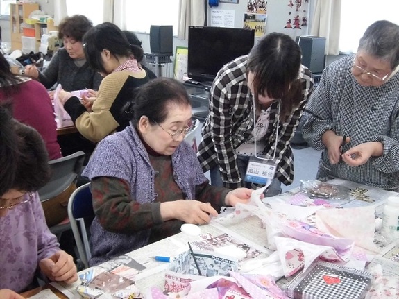 今日は、午後から大森団地の集会所でデコパージュ石けんのワークショップがありました。