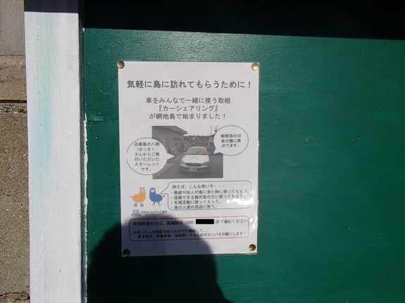 そこで、ジョイフル網地島の要請を受け、カーシェアリング用の車(スターレット)を貸し出し、島民、島民の知人・友人、支援者の方々が使えるカーシェアリングが始まりました。