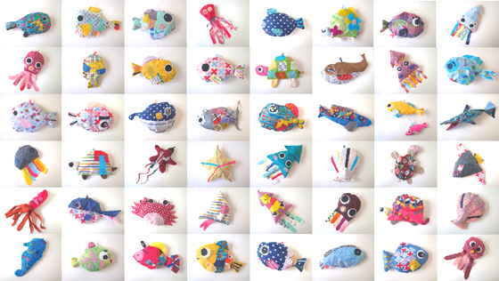 東日本大震災の後、CASA PROJECTでは応援旗を送る「CASA-HATA」プロジェクトを各地で展開したり、またこどもの日には福島県いわき市にてこいのぼりをつくるワークショップを開催、先日17日には神戸にて「CASAでおさかなをつくろう!」というワークショップを行い、今月末に宮城県南三陸町で開催される福興市の会場装飾に使うためのおさかなたちを制作しました。