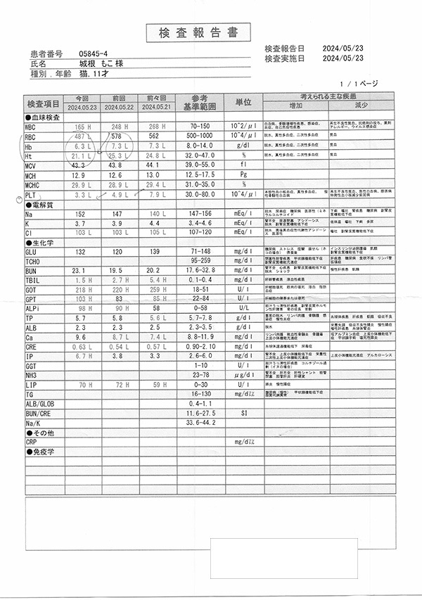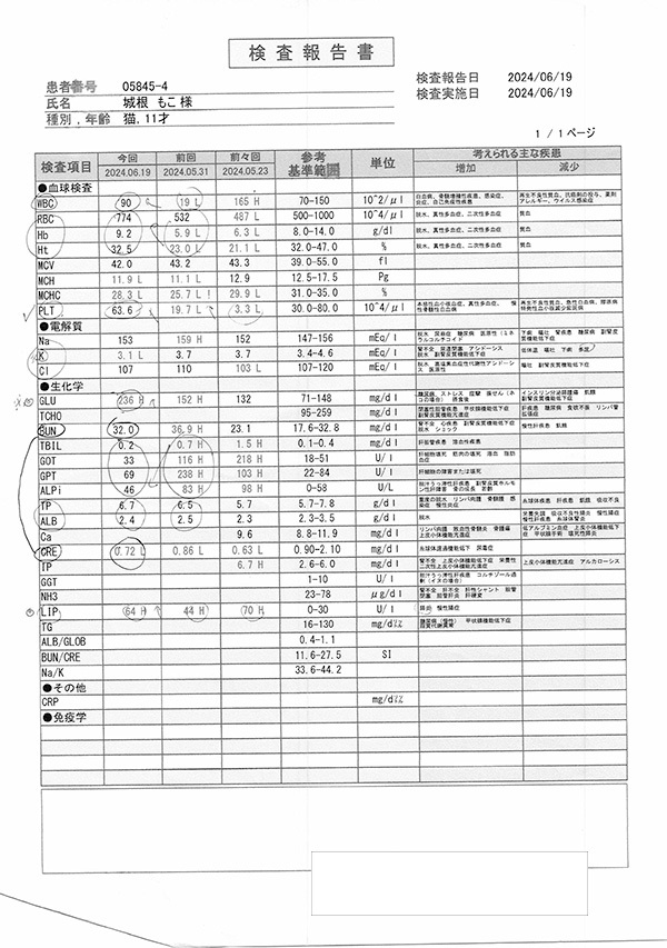 猫の状態は入院前より良くなっているが、薬の効果は高くないので今後の心配もあって、