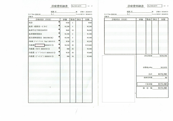 検査とお薬5日分 175,285円