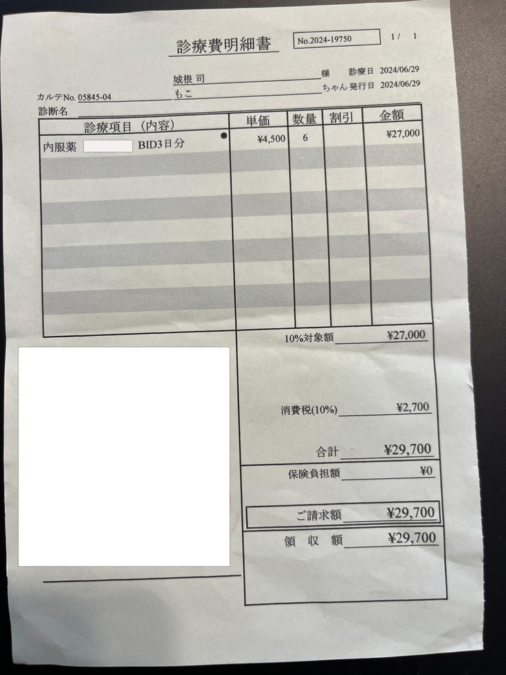 高額治療のため、保険適用外であれば治療をあきらめようかと一瞬思ったのですが、次の治療で獣医さんに、