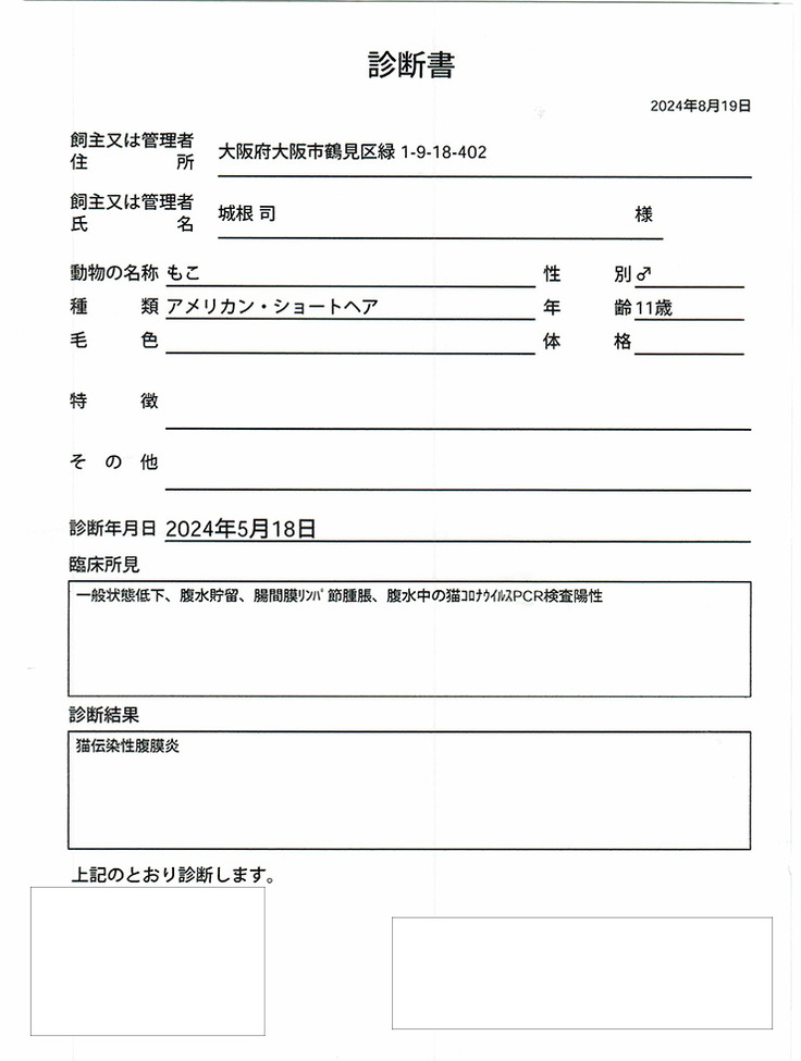 実行者のペットであるmocoの難病FIPの治療費にかかった費用に充てさせていただきます。