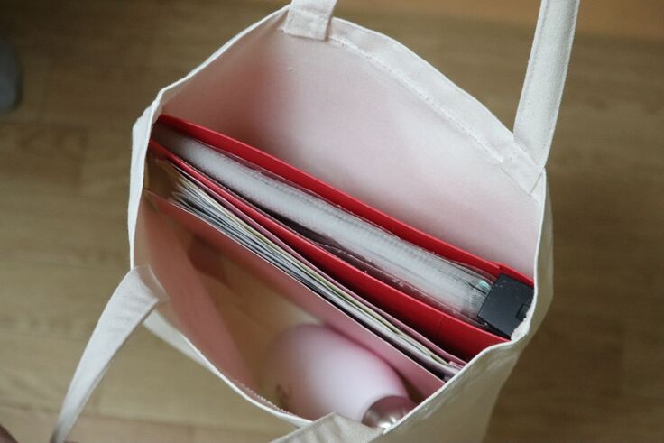 ペンや手帳、スマホや充電器も入る使いやすいサイズです。