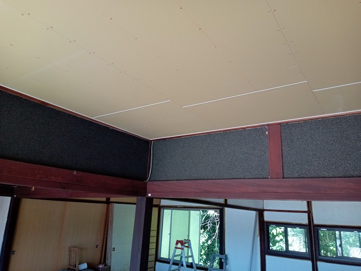 前回の報告でお伝えしていた天井の解体ですが、断熱材を入れてあとはクロスを貼るだけになりました。